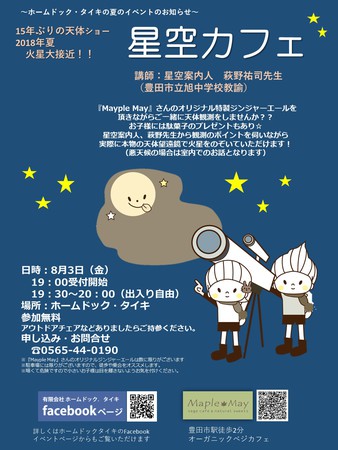 夏休みに開催されるタイキでのイベントのお知らせです。