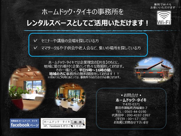 #癒しの空間#豊田市 #ホームドックタイキ #レンタルスペース #リフォーム #リノベーション #下水道工事 #事務所開放 #地域貢献 #地域のつながり #無料スペース #地域貢献活動 #頑張る人を応援する