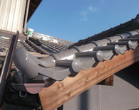 まず屋根(瓦)の状態を確認させて頂きました・屋根の谷部を銅板でパッチワーク補修 ・一部漆喰の補修 ・屋根の棟先を銅板で修繕 ・隙間をシリコンで補修 ・熨斗瓦、冠瓦のやり直し ・トンボ穴の補修 ・銅線のやり直し等部分的に修繕させていただきました