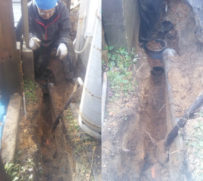 埋まっていた桝も見つかり、無事に配管作業を進めることができました。下水道工事の際に、必要となりうる作業もホームドック・タイキにお任せください