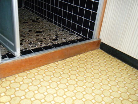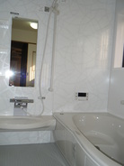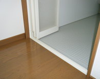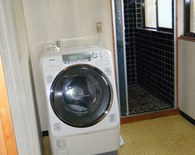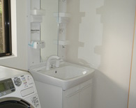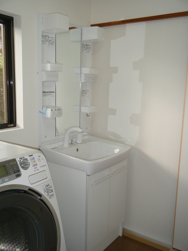 今までの浴室と洗面を貫通させ 浴室のスペースを広くとりました。浴室へ入る仕切りの段差もなくし年配の方にもやさしい浴室になりました。浴室の入り口も今までと変えて まっすぐに入る動線にし、脱衣所がすっきりとなりました。