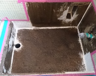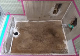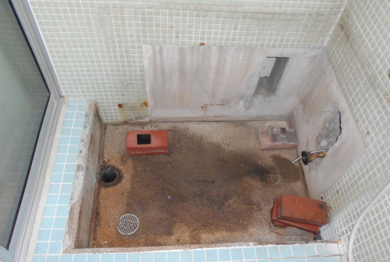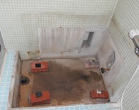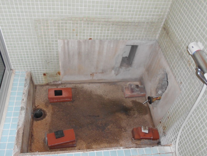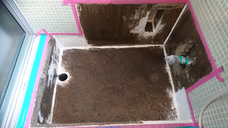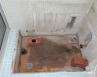 浴室のコンクリートに亀裂ができてしまい排水が排水パイプに流れず、亀裂から縁の下へ漏れてしまうから何とかしたいとご相談を頂きました。