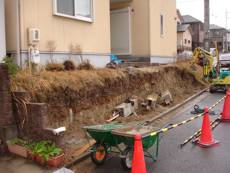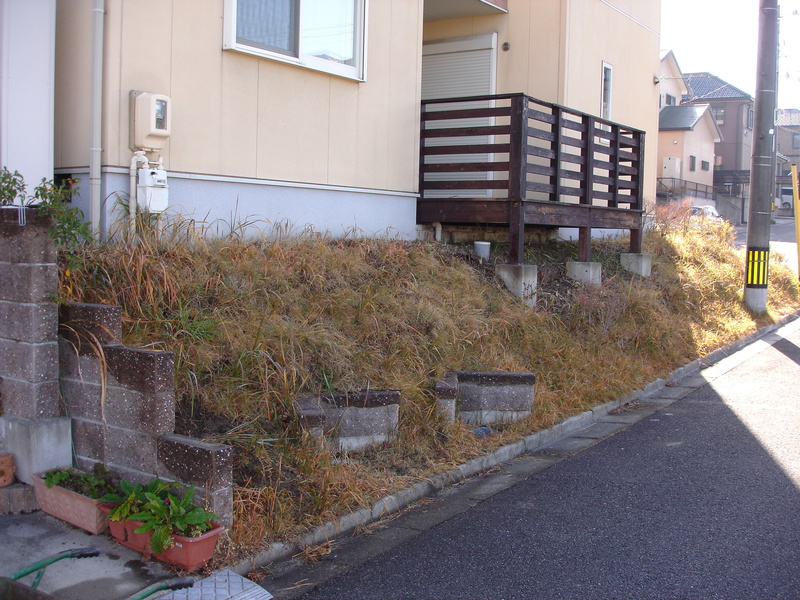 斜面の土が大雨等により流れてしまい土留めをしたいので宜しくお願い致します。またウッドデッキも老朽化していて見栄えもよくないので一緒に撤去お願いします。