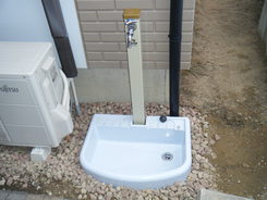 下水道工事と一緒に外の水栓を設置しました。現在地中に入っている水道管からの分岐による工事で水道管の確保をしております。
