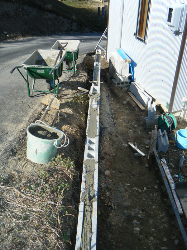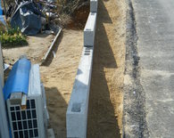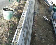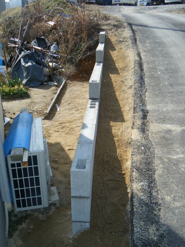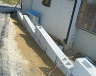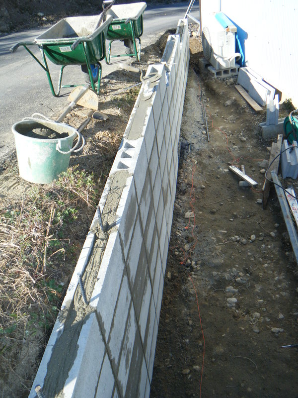 あくまでも土留めが目的で費用も抑えてほしいとの施主様からの要望でしたポイントとしては縦筋、横筋を入れて強度を保つようにしています。高さはそれほど高くなかったので12cm巾のブロックを使用してます