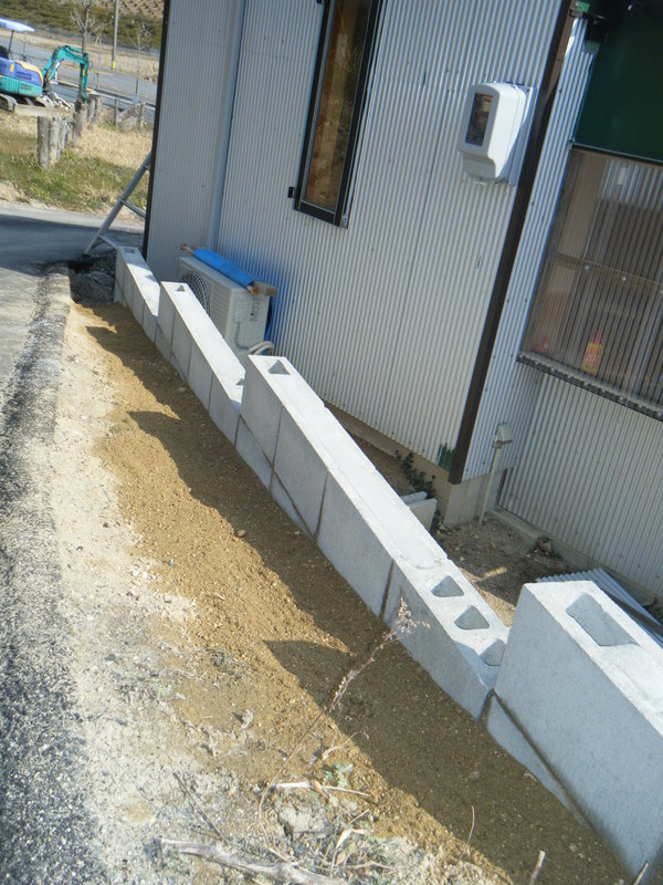 道からの土が下がって来るので土留めのブロックを設置してください