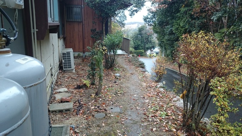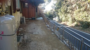 玄関から出た所が高台になっているので手摺だけではなく手摺の下の空間に格子を付ける事を提案しましたビフォーは昨年までの玄関周りです