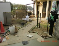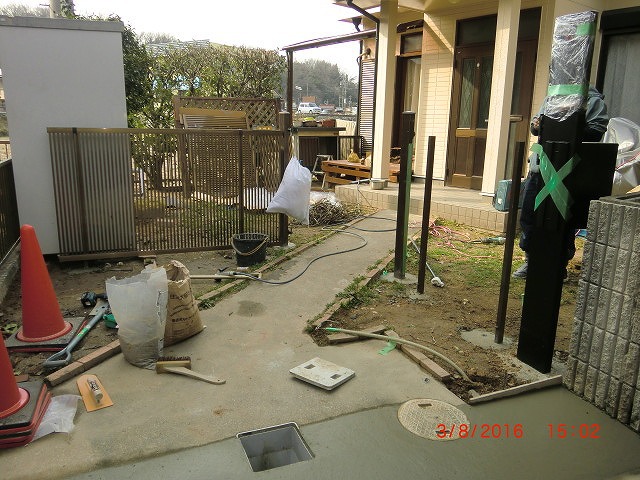 現在の門扉の向きを変えて庭のスペースを駐車場にする事にしました