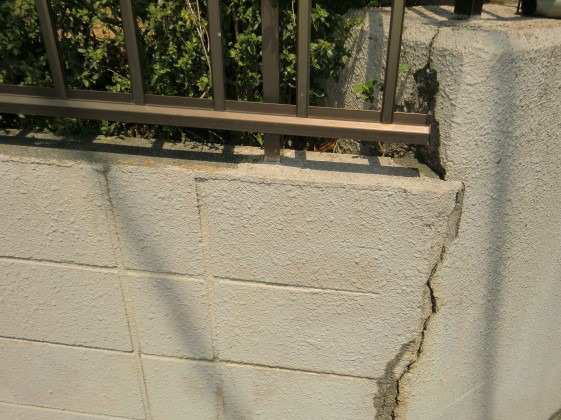 外壁の土留めブロック箇所にクラックがはいり崩れてきそう。不安で心配なので何とかしてほしい
