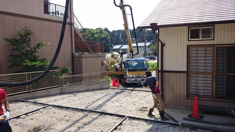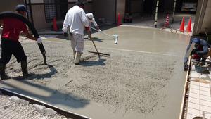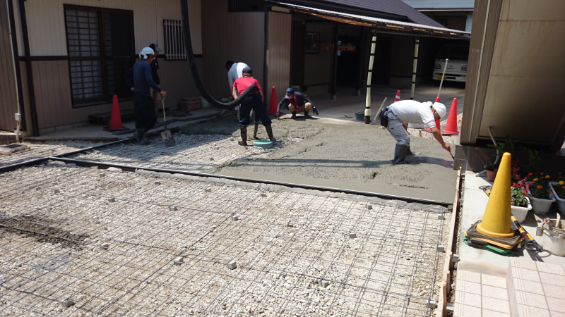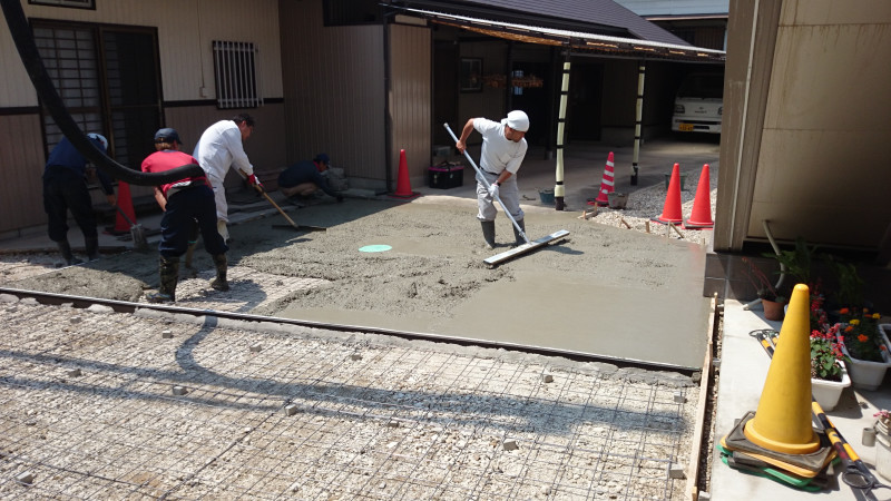 今回は工事範囲が広く生コン車とポンプ車を導入した大掛かりな工事となりますが、近隣の方のご迷惑にならないよう、事前準備から当日の交通整備など手際よく進めていきました。きれいな仕上がりにご満足いただけました。