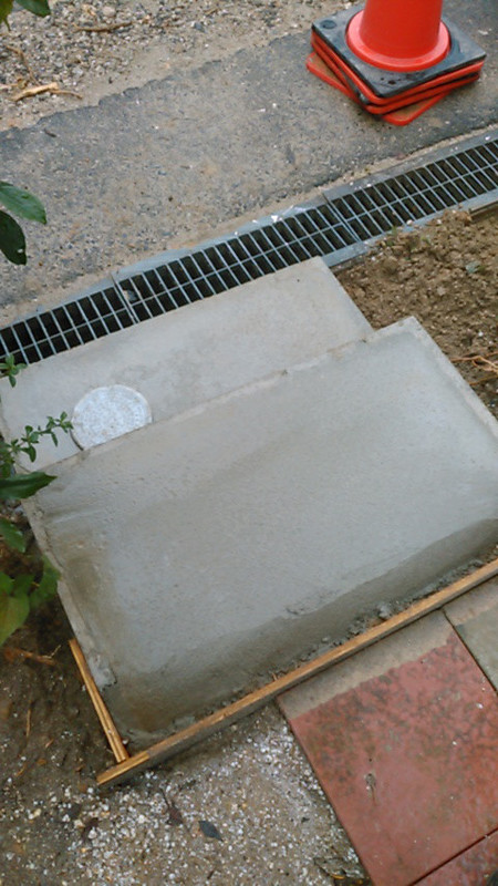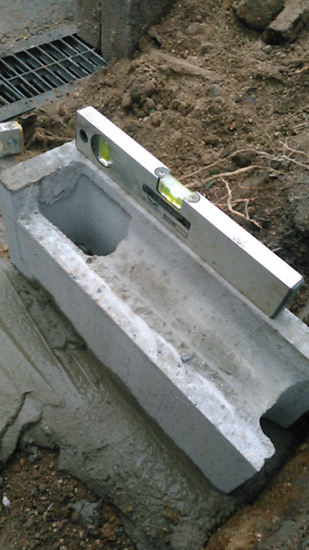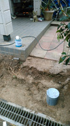 もともとブロックを並べただけの簡易的な階段がありましたが、お客様がご自身でブロックを置いただけのものなので、どうしてもグラグラして足場が不安定でした。施主様の奥様の足が少し不自由で踏み外したり、滑ったりしたら大変だということもあり、今回、下水道工事と一緒に階段の改修工事もご依頼いただきました。