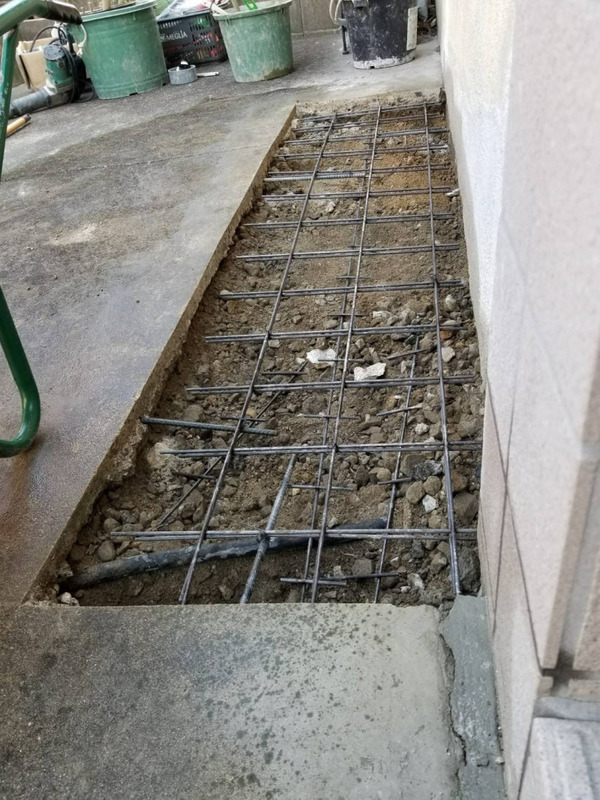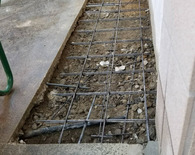 コンクリート打設の前にメッシュ筋を敷設します。これで、穴もふさがり、きれいな仕上がりとなりました