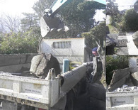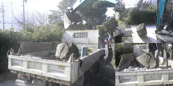 ユンボで釣り上げてトラックに積み込みました。かなりの力仕事でしたが、作業もスムーズに終えることができました。