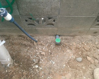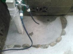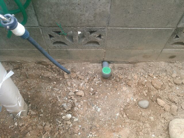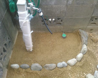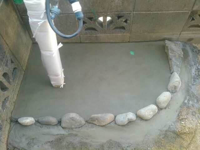排水のパイプを通し、石を並べ、砂で底の形を整え、コンクリートを打設して完成です。お客様も喜んで下さいました