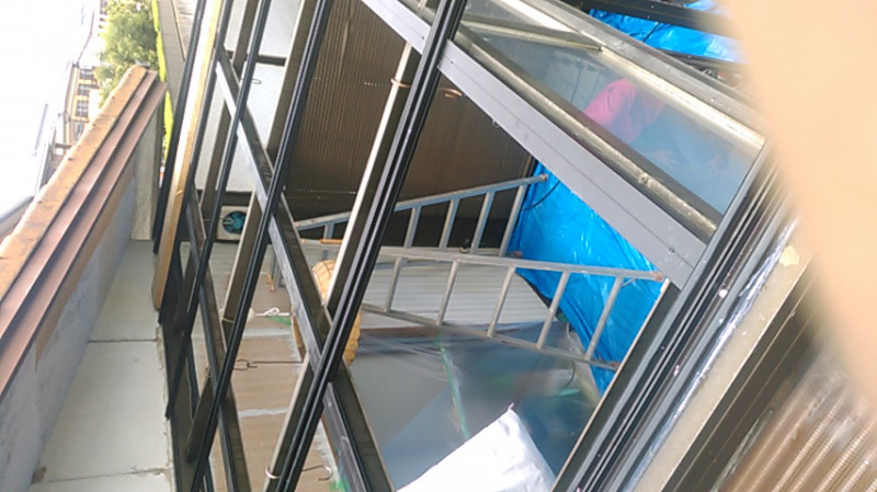 今回は、既設の屋根のみを解体し、既設の枠組みを利用して新しい下地を組み、屋根材を施工しました。