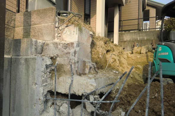 高低差のある擁壁を解体し、拡張するという工事でかなり神経を使いました。掘削すると土のなかにかなり大きな岩がおそらく出てくると、施主様からも言われていましたが案の定、やはり掘削し始めるとすぐに大きな岩がごろごろ現れ工事の妨げとなり、苦戦しました。結果的には無事に工事が終えられてご満足いただくことができました。