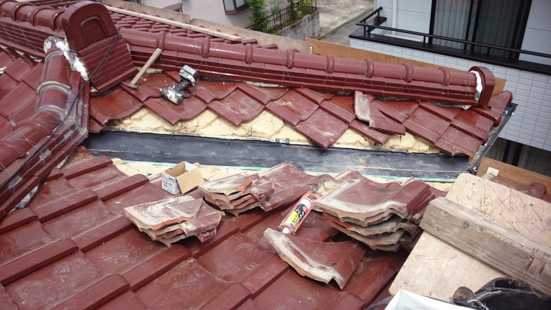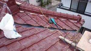 伺って見させていただくと屋根瓦がズレていました。経年劣化でよくあることです。今回は板金を取替て瓦を敷いて修繕させていただきました。『雨漏りなので被害が拡大する前に早く対応してくれてよかった』と喜んでいただけました。
