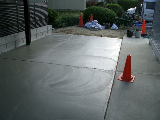今回のお宅のように、広い面積のコンクリート打設する場合は、面積の割合によって必ず収縮目地を入れることと水勾配に注意することをオススメします。駐車場の増設やリフォームはタイキにお任せ下さい!