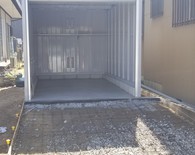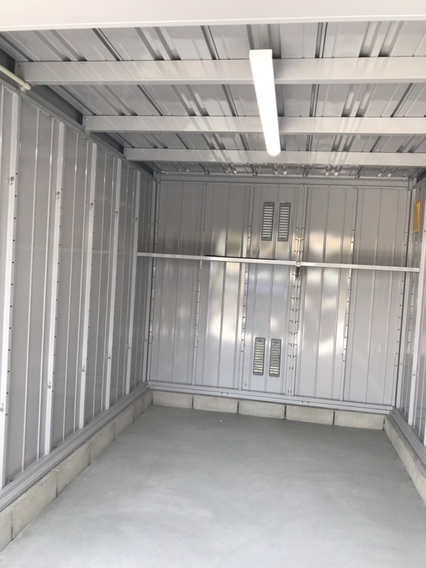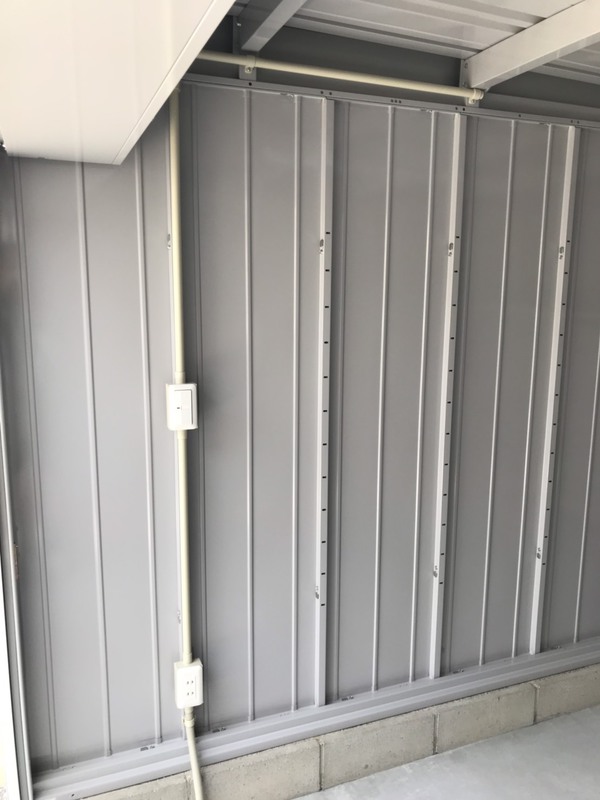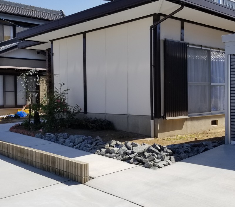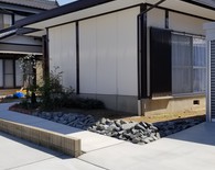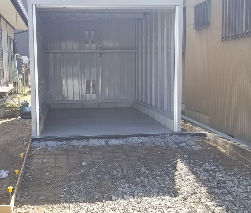 バイクの保管庫を設置させていただきました。お庭をフルリフォームで庭木を伐採し土間コンクリート仕上げをしました。