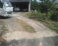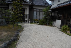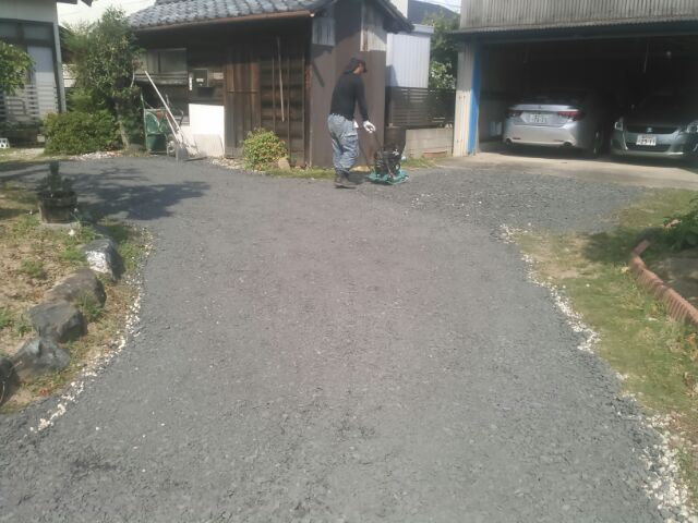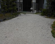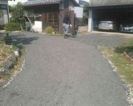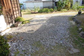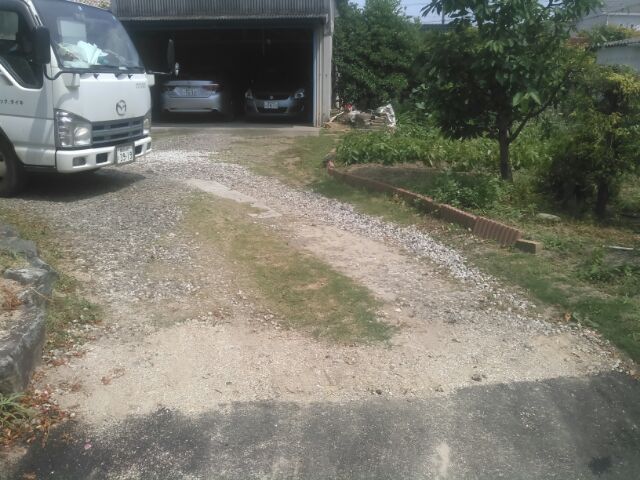 以前からの玄関~駐車場の砂利が土の中へ入り込んでしまって、デコボコしているので砂利を足したいとご要望をいただきました。