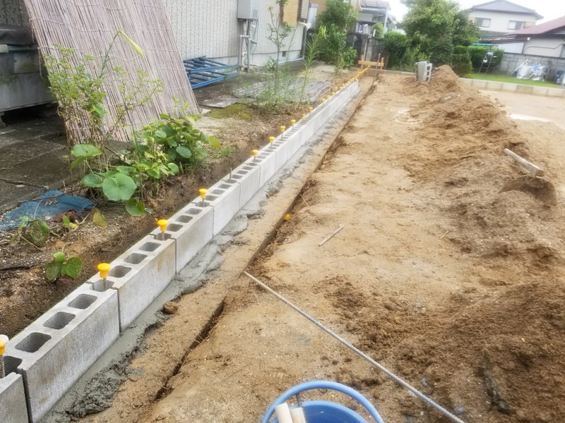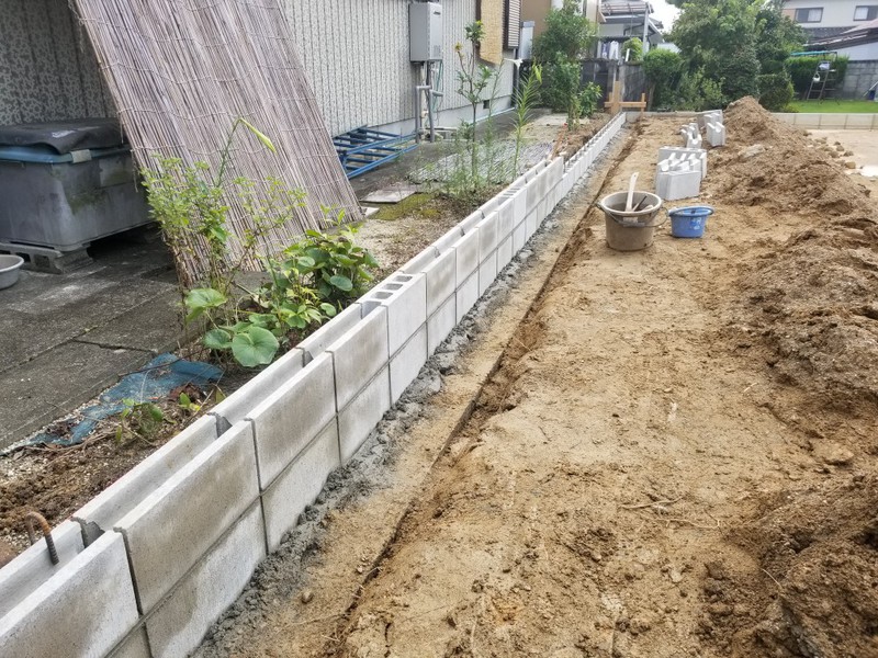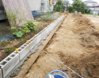 隣地との境界にブロックを積んでほしいとご依頼をいただきました。基礎鉄筋を組んで直線上にブロックを積んでご要望通り仕上がりました。