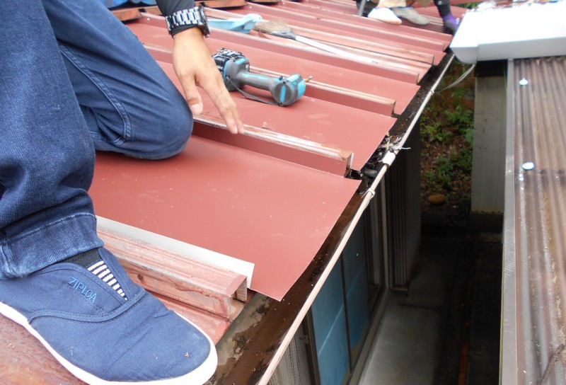 『板金屋根(瓦棒)錆びて穴が開いてしまって部屋に雨漏りがしているので至急補修工事をして欲しい』とご要望をいただき対応させていただきました。