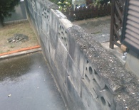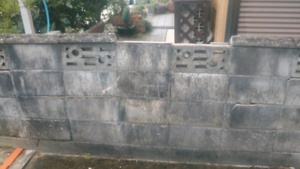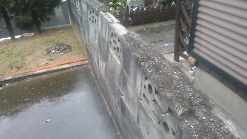 ブロックの積みなおしの際にかさぎがとれかけており落下などの危険性があったため、撤去して表面を仕上げをさせていただきました