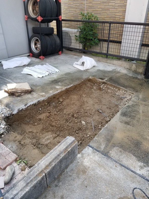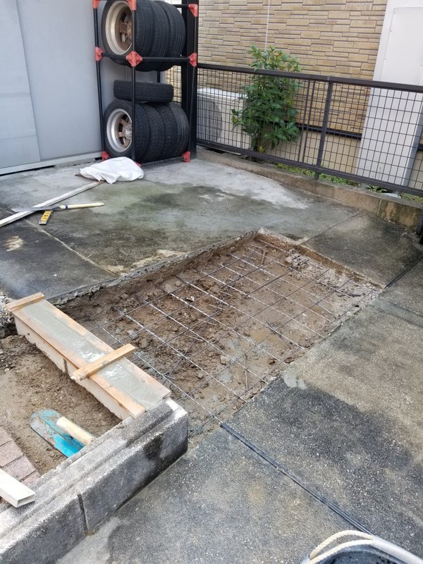 奥に段差があり、駐車スペースが限られていたお宅の駐車場ですが、段差のブロックを解体して段差をなくしスロープをコンクリート敷きで仕上げた事例になります。