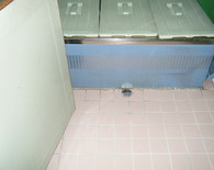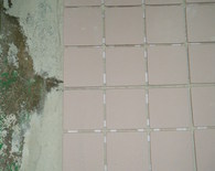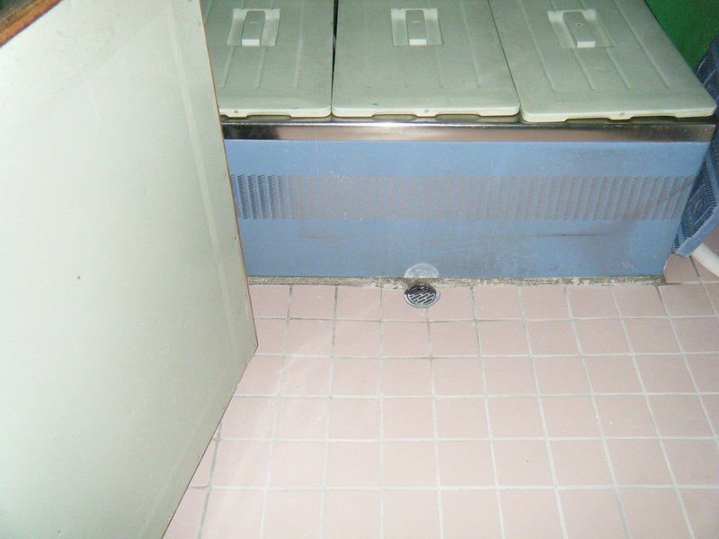 洗い場、洗濯場共用の浴室で今まではコンクリートにペンキが塗って有りましたが ペンキがはがれてきたのでタイルを敷きました。浴槽の下はタイルを敷き詰めるには隙間が無くコンクリートで仕上る事にしました。
