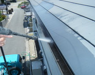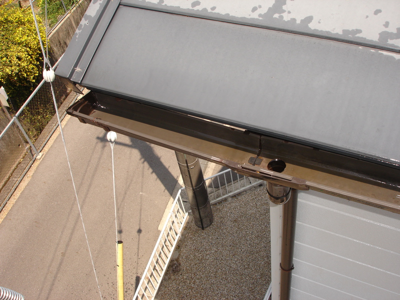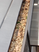 写真で見ての通り枯葉がびっしり蓄積していました。何重にも重なり合っていて下の方は濡れていて風が吹いても舞っていけずに蓄積していったと思われます。作業として落葉を取り除き 高圧洗浄で縦樋の詰まりを取り除いた後清掃をしました。雨樋用枯葉防止ネットをお勧めしたのですがデメリットとして銀杏の葉の茎部分がネットに引っかかった時の事を考え検討中です