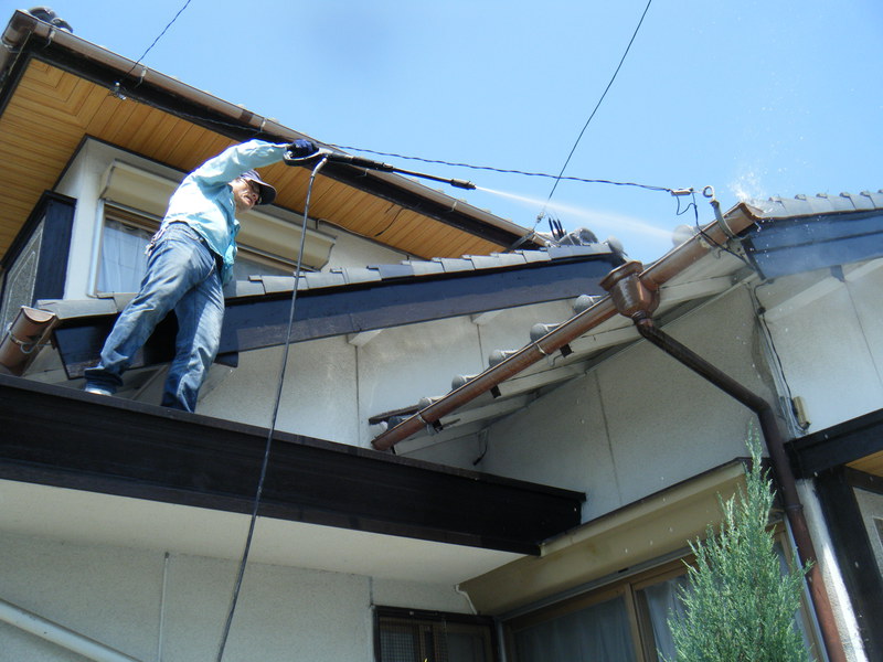 今回は雨樋の汚れも気になるとの事でしたので先に雨樋の清掃も一緒にしました。