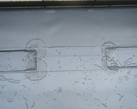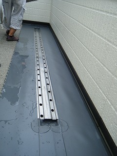 まず雨漏りの原因となる箇所を調べた所、ベランダからという事が分かりました。そこで、処置としてベランダ床の亀裂箇所にコーキングをし補修しました。しかし、あくまでも応急処置なので 今後の事を考えてベランダの床材に防水シートを張る提案をさせて頂きました。これで今後10年くらいは大丈夫と思います。(紫外線の当り具合や使用頻度によって多少年数は変わってきます)