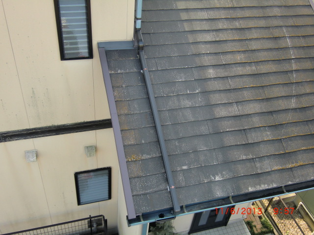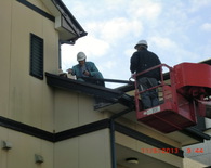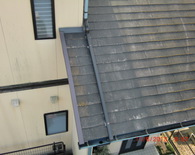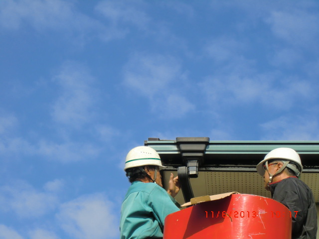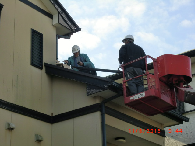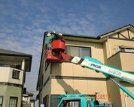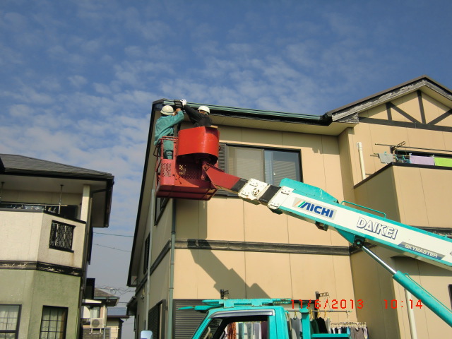 こちらのお宅は高台の上に立っているのと合わせて脚立を掛けるスペースが取れなかったので高所作業車を使用しての作業となりました。