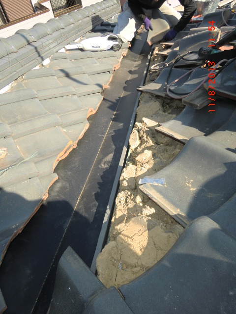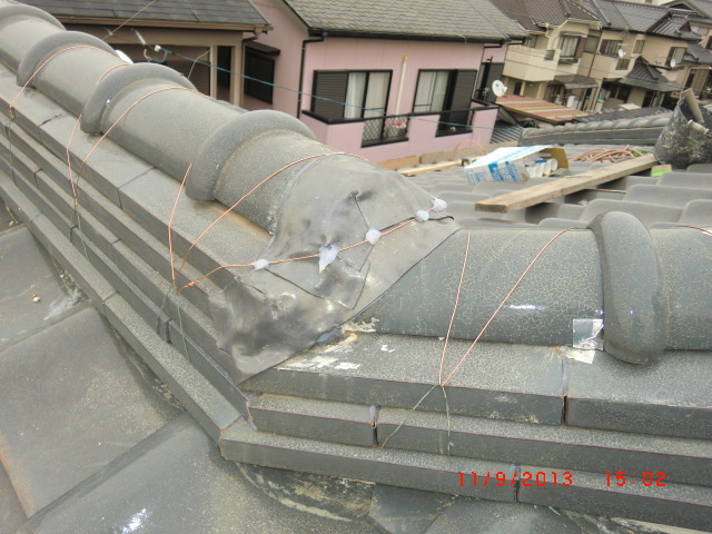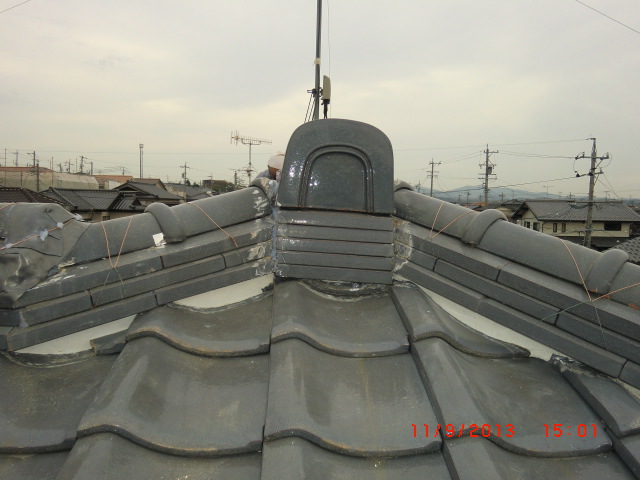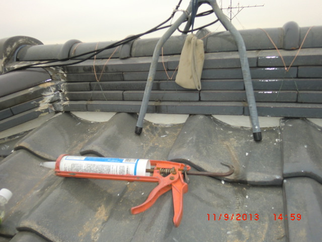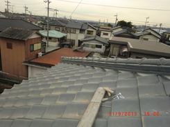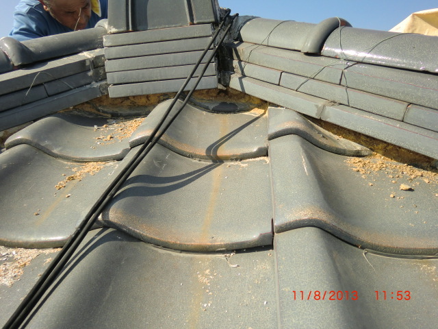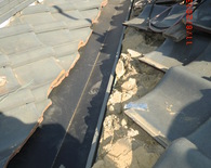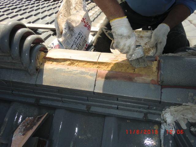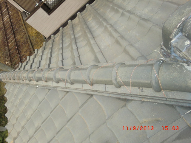 雨漏りの調査依頼でよくある事で普通の雨は大丈夫だけど台風の時だけ雨漏りをするという御家庭があります。台風のように巻き返しがあったり横殴りの雨だったりという通常では見られない降り方によって屋根の繋ぎ目だったり、増築した所の繋ぎ目などから雨漏りする事が有ります。今回の原因は屋根の老朽化、特に漆喰の老朽化と熨斗瓦のズレが雨漏りの原因でしたので補修をして雨漏りを防ぎました