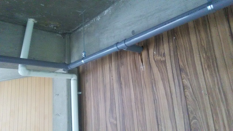 今回は一階部分に駐車場・倉庫があり、水廻りは二階にあるので、その吊配管を行いました