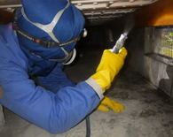 お客さまから『シロアリ被害を発見したので対応してほしい』とご相談をいただきました。調査の結果、緊急事態ではないという判断ではありましたが、床下に潜り全域に薬を散布させていただきました。