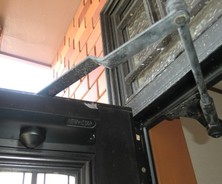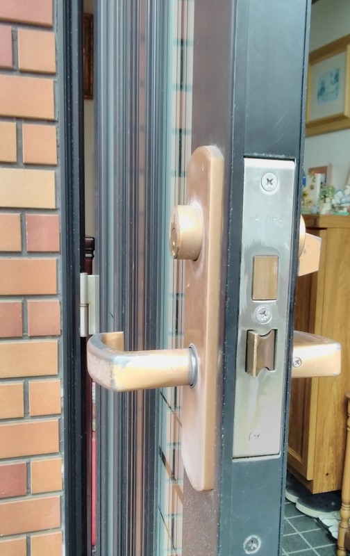 以前から玄関ドアのドアクローザーのビスがゆるんでしまりが悪くなり最近締め直したがまたゆるんで来て外れてしまったから修理してほしいとご依頼をいただきました