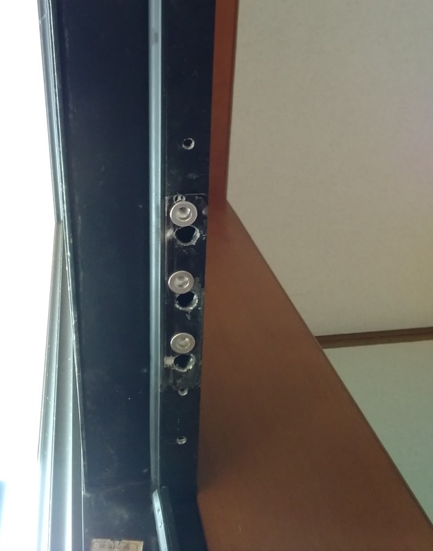 ドアクローザー本体のビスが振動等により外れると同時にビス穴の山がなくなってビスが取付出来ない状況でした。今回は以前ドアクローザー本体を取り付けていたビスの位置を止めて、新たにビス穴をあけ直し位置移動して付け直しました。ビスの位置は移動しましたが、しっかりとドアも止まってくれて機能には問題なしです。無事に修理することでき、よかったです。
