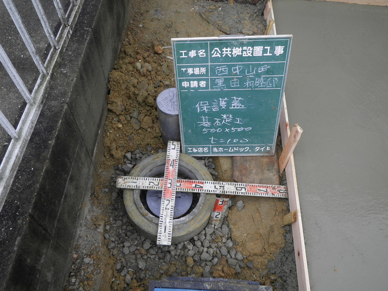 公共ますを設置。水道メーターの移設。玄関アプローチがすごく変わり 駐車スペースも取れました。