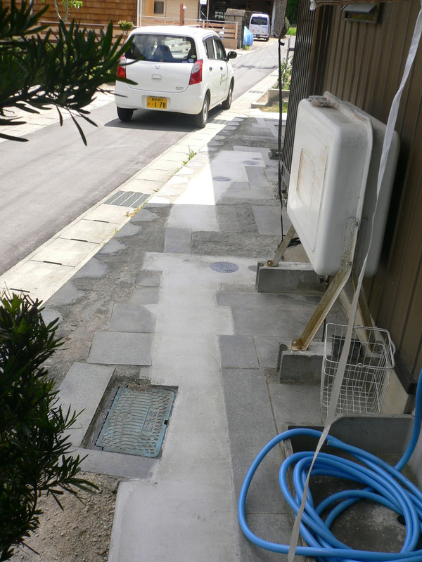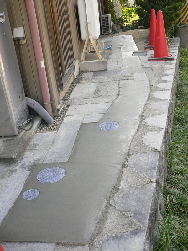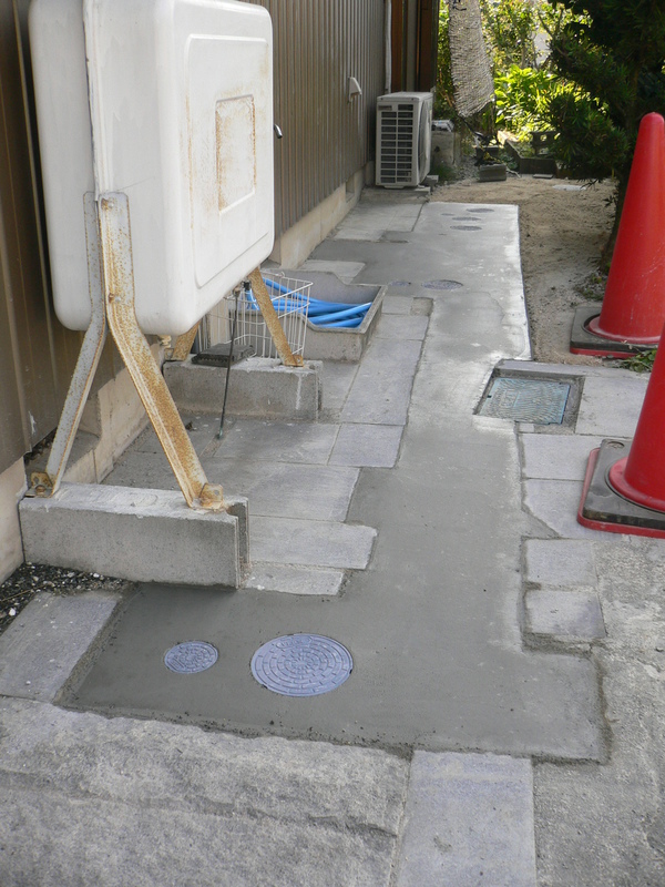 下水工事を依頼します。切断してしまった石の復旧はコンクリート打ちで大丈夫ですお願いします。