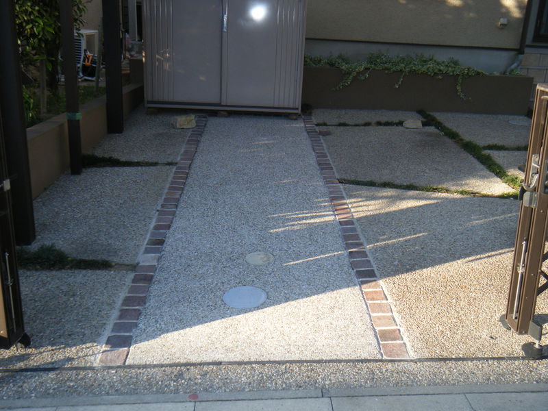 仕上げですが既設の洗い出しとの境界に施主様の所にありましたサイコロレンガをリサイクルして使用しました施主様と表面に出すレンガの感じ等 当日にも現場で打合せをしました。