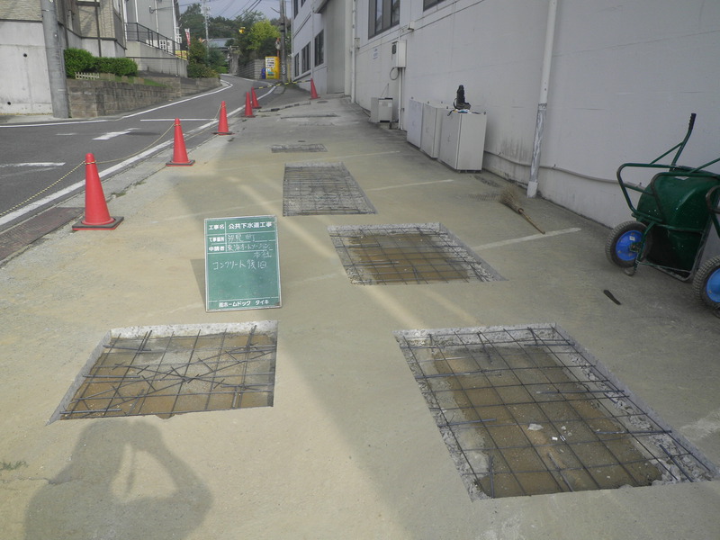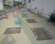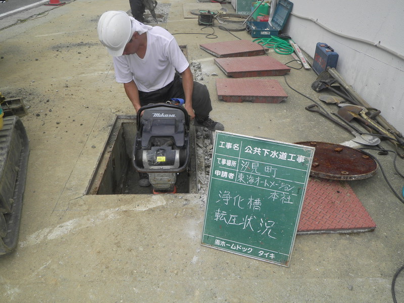 本社様の工事に当り、工事後に車が乗車するので、浄化槽汲取り後の浄化槽処理は転圧はしっかりと行い直接生コンを流し入れ、振動を加えて余分な空気を抜き強度を保つようにしました。その後もう一度鉄筋で補強しコンクリートで復旧しております。