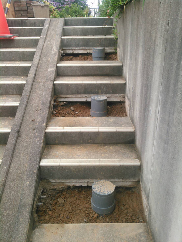 外部階段に下水管を配管する工事で、取り壊し箇所を最小限に施工することに注力しました。