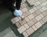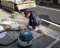 下水道工事後のレンガ復旧工事をさせていただきました。排水口のまるい形に合わせてレンガを器用に削っていっていく作業に苦労しました。