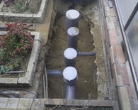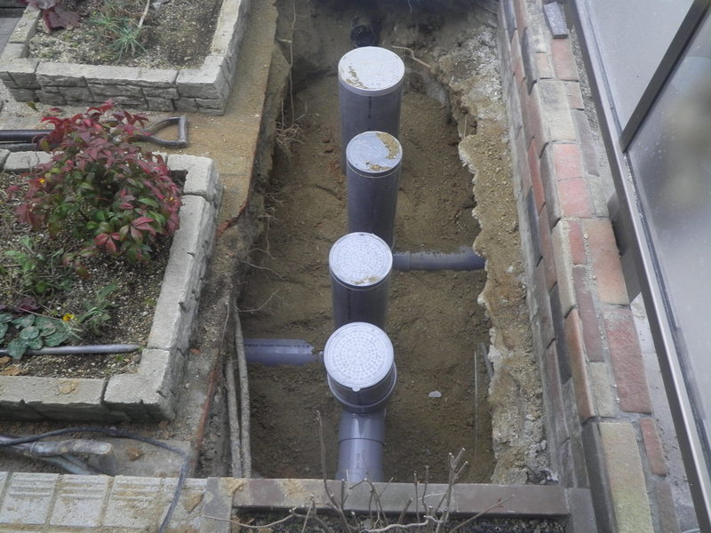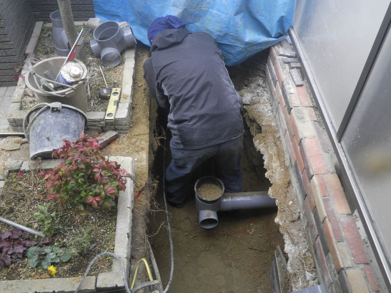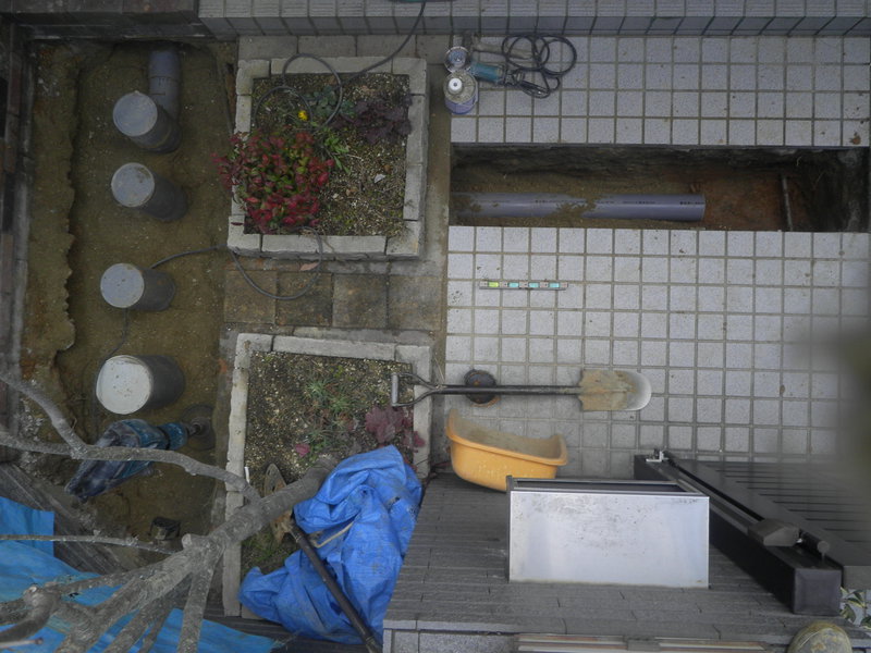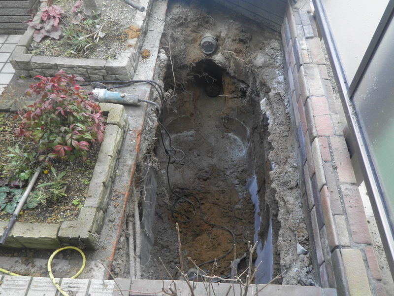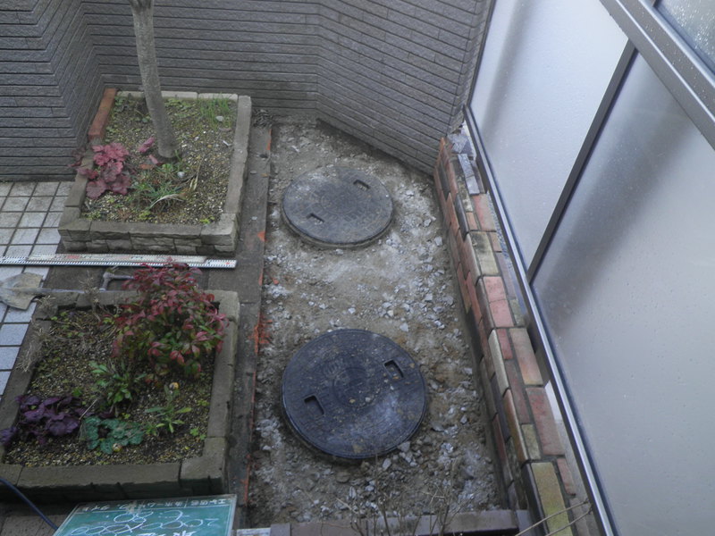 今回の下水道切り替え工事のお宅は浄化槽のあるところに、公共桝をつけていきました
