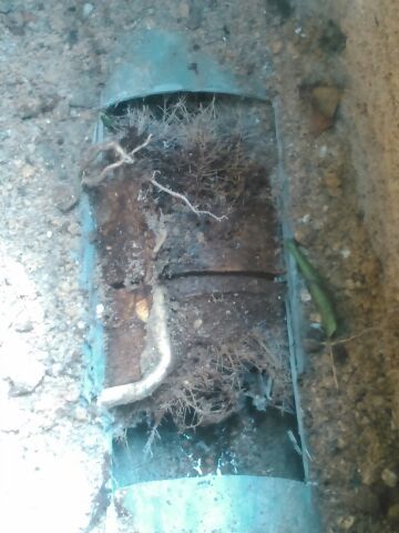実際に見てみると配管に木の根っこが入り込み束子の様になっていました。ただ配水管を復旧させるだけでなく今後お客様でも掃除が出来る様に掃除口を取り付ける作業をさせていただきました。