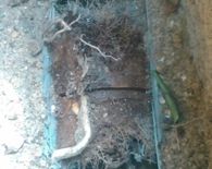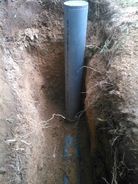 『前回の施工場所以外の所で配水管が詰まっているから見てほしい』と連絡をいただき、実際に掘ってつまりの原因を調べさせていただきました。