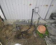 こちらのお宅のトイレスペースが狭く室内での給水栓の分岐をするとタンクを手前に出す事となり必要スペースが取れないので外部から給水を取りました。今回はウォシュレットは既設の物を使用しています。便器セットはTOTOの商品です。