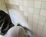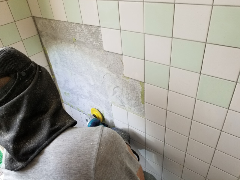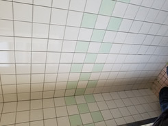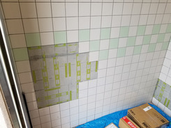 ごっそりと一か所だけはがれてしまった個所を平らにして新しくタイルを貼りなおしました。