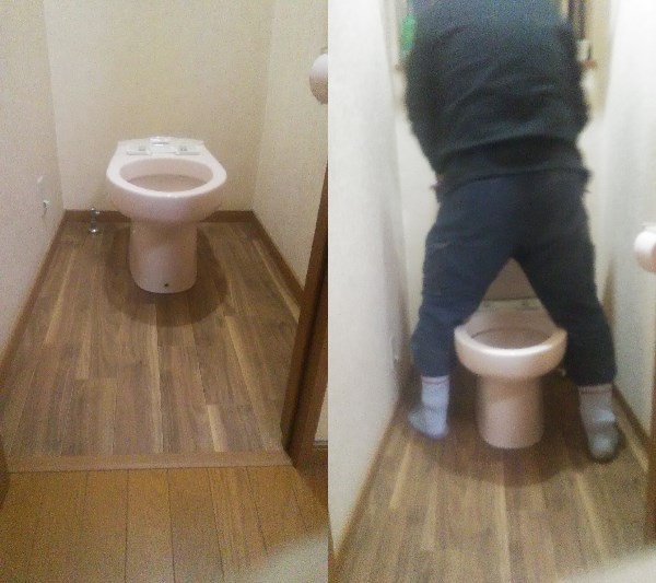 便器を外して木のぬくもりが感じられる床材に取り換えさせていただきました。お客さまにもご満足いただけました!